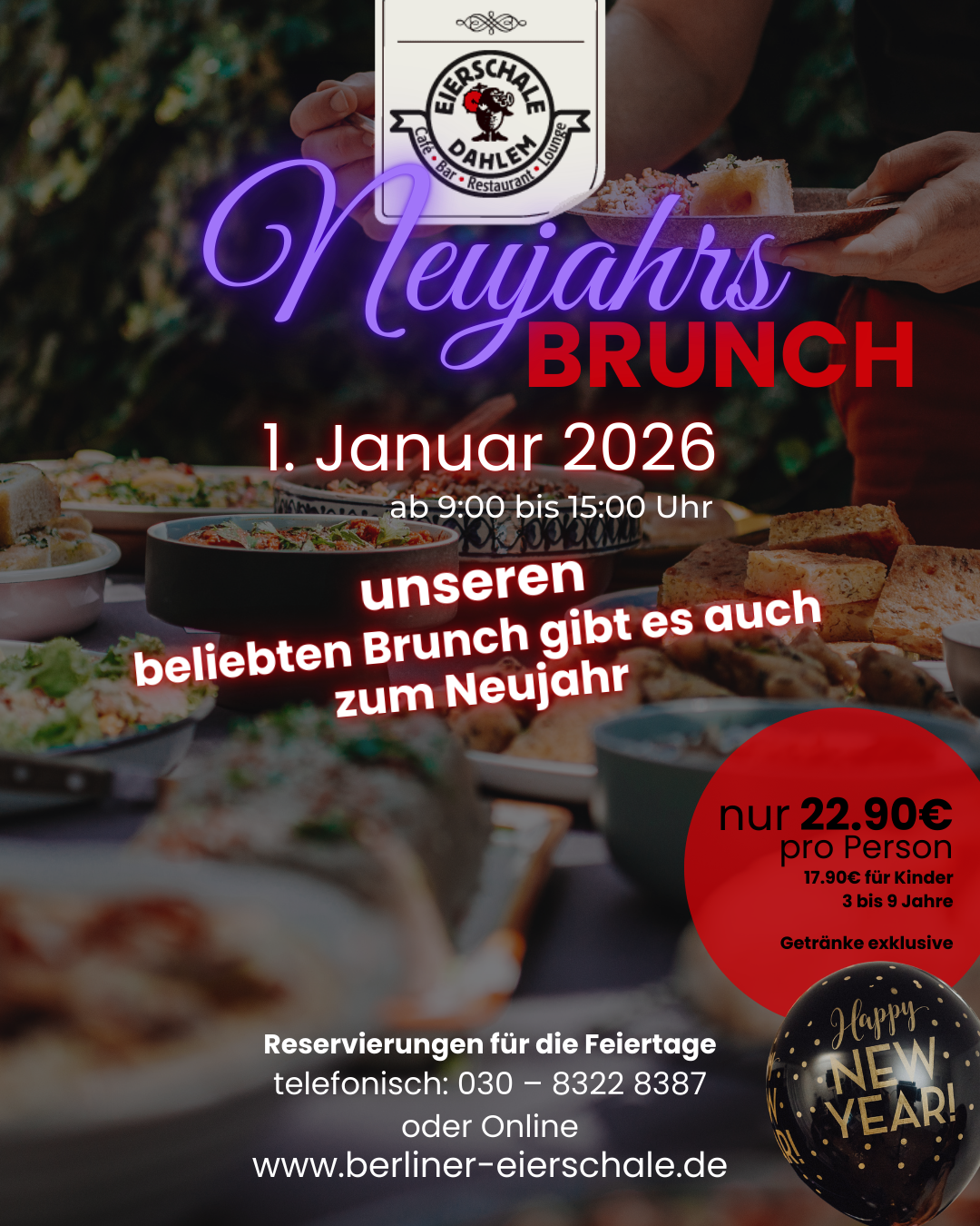 großer Sonntagsbrunch jeden Sonntag & Feiertags von 9 bis 15 Uhr